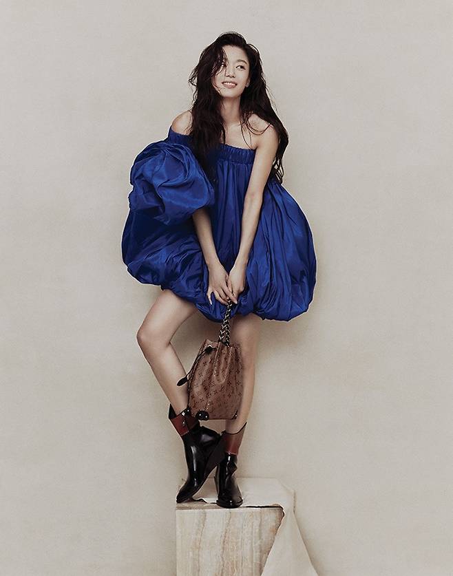 화보 속에서 그녀는 구조적이고 미래 지향적인 디자인의 가죽 점퍼 슈트룩을 비롯해 풍성한 볼륨의 오프숄더 원피스 등 곡선미와 실루엣이 돋보이는 다채로운 윈터룩을 선보이며 보는 이들의 감탄을 불러일으켰다.