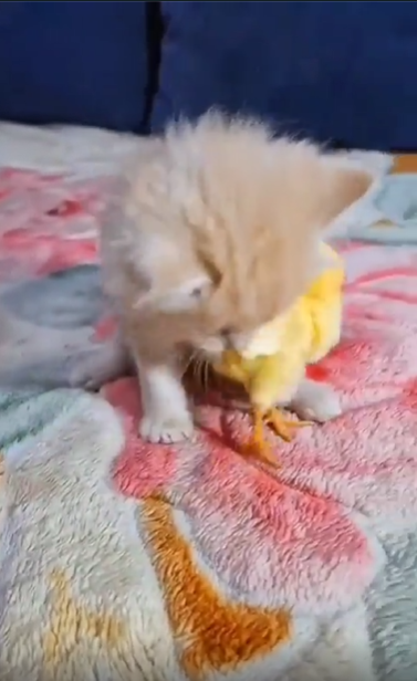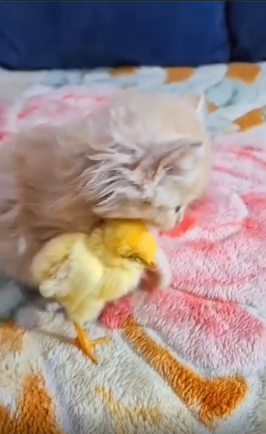 이 장면을 본 사람들의 반응은 “고양이가 지금 최대한 배려하고 있는 게 보여서 더 귀엽다”, “장난감이 아니라 친구로 대하는 느낌”, “저게 바로 생명 존중 놀이”라는 댓글이 이어졌고, 어떤 이는 “병아리가 안 무서워하는 게 진짜 포인트”라며 감탄을 더했습니다.