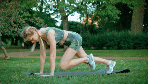 플랭크 기본자세를 취합니다. 복부에 힘을 주며 왼쪽 무릎을 가슴 쪽으로 당겼다가 되돌립니다. 이어서 오른쪽 무릎을 당겼다가 되돌리는 동작을 반복합니다. 점점 속도를 높이며 무릎을 번갈아 빠르게 당겨주는 동작을 반복하세요.
