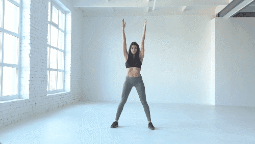 바닥에 서서 다리를 넓게 벌리고, 손은 머리 위로 뻗어 준비합니다. 상체를 앞으로 숙이며 손을 바닥 쪽으로 내리면서 엉덩이를 낮춰 스쿼트 자세를 만듭니다. 엉덩이를 충분히 내린 상태에서 손을 다시 머리 위로 뻗어줍니다. 상체를 일으켜 세우며 원래 자세로 돌아옵니다.