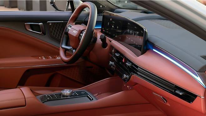 실내는 진일보했다. 메리디안 사운드와 듀얼 디스플레이가 프리미엄급 분위기를 연출한다. 주목할 만한 점은 뒷좌석이다. 제네시스 G80보다 높은 만족도 평가를 받았다. 전용 송풍구와 열선·통풍 시트는 기본이고, 레그룸도 넉넉하다.