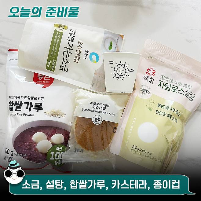 참~ 계량은 종이컵과 숟가락으로 할 예정이니 같이 준비해주세요.