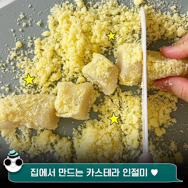 꼬숩꼬숩 맛있는 카스테라 인절미가 만들어졌습네다! 짝짝 ㅎㅎ