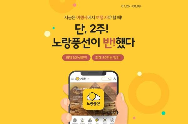 (주)노랑풍선(대표이사 김진국, 이하 노랑풍선)이 여름휴가 시즌에 맞춰 '노랑풍선이 반! 했다' 프로모션을 진행 중이다. 여행상품 가격의 최대 50% 할인 또는 인당 최대 50만 원 할인 혜택을 적용하는 프로모션이다.