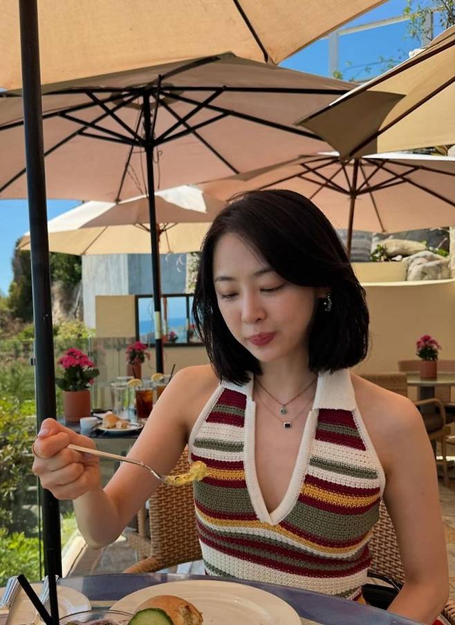 공개한 사진에서 다솜은 늘씬한 8등신 몸매가 드러난 홀터넥 니트 미니 원피스를 입고 여유롭게 시간을 보내고 있는 모습을 드러냈다.