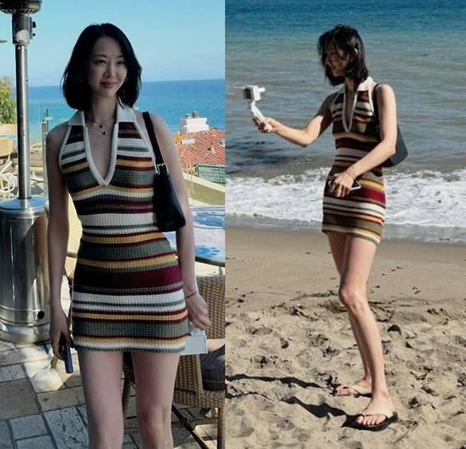 씨스타 출신의 배우 다솜(김다솜)이 미국 말리부에서 니트 홀터넥 미니 원피스룩으로 시선을 사로잡았다.