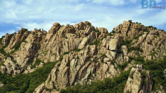 멀리서 보면 산이라기보다 거대한 바위덩어리처럼 느껴질 만큼 능선 전체가 암릉으로 구성돼 있다. 그 위를 따라 매끈하게 깎인 바위들이 줄지어 서 있고, 봉우리마다 기묘한 형상을 드러내며 압도적인 분위기를 자아낸다.