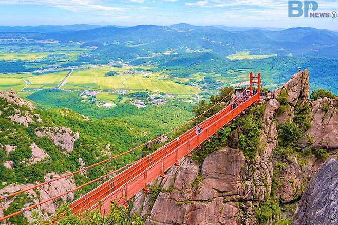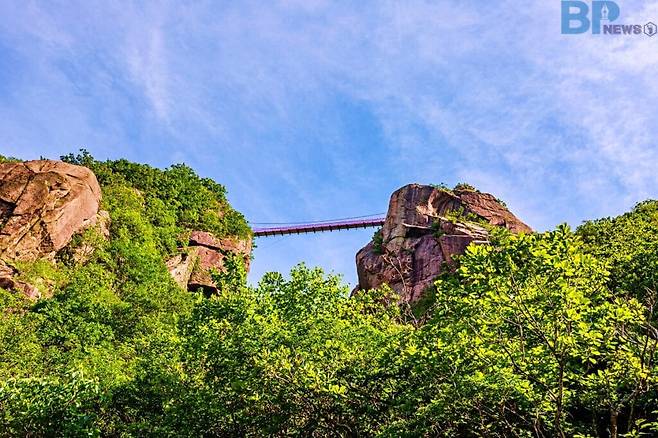 하지만 여름의 월출산에서 가장 눈에 띄는 풍경은 따로 있다. 바로 해발 510미터 지점 협곡 사이에 매달린 ‘구름다리’다.