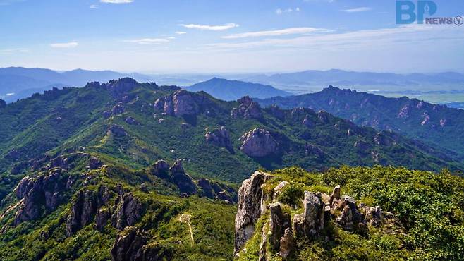 암릉으로 이어진 봉우리들, 거대한 바위가 솟아오른 능선, 능선 아래로 펼쳐진 논밭의 풍경이 조화를 이루며 여행객들의 발길을 사계절 내내 이끌고 있다.