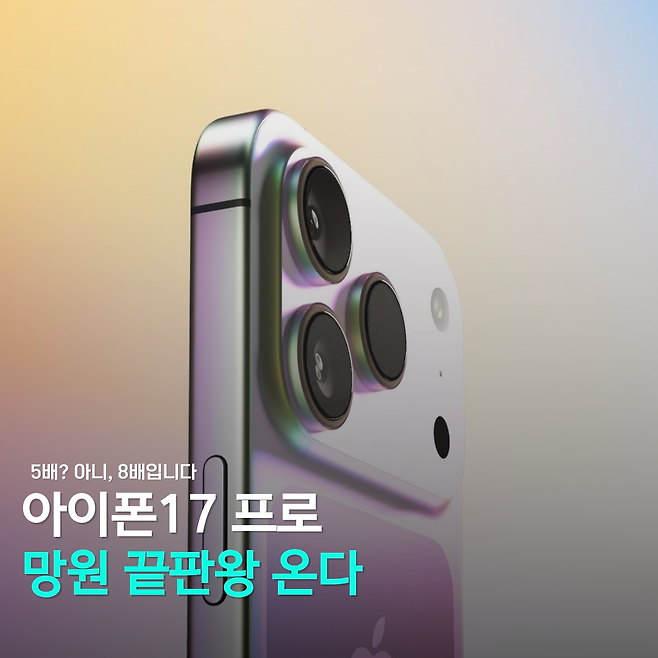 이번 아이폰17 프로는 겉모습만 바뀌는 게 아니라, 카메라 성능도 확실히 업그레이드될 거란 예상이 많습니다. 특히 주목받는 건 8배 광학 줌입니다. 지금 판매 중인 아이폰16 프로 맥스도 5배 줌까지만 되는데, 이번엔 훨씬 더 멀리, 선명하게 당길 수 있다는 거죠.