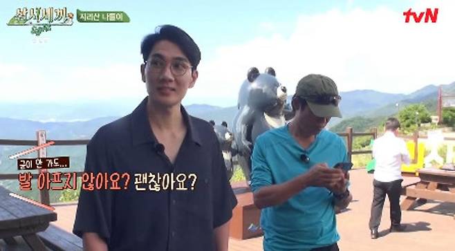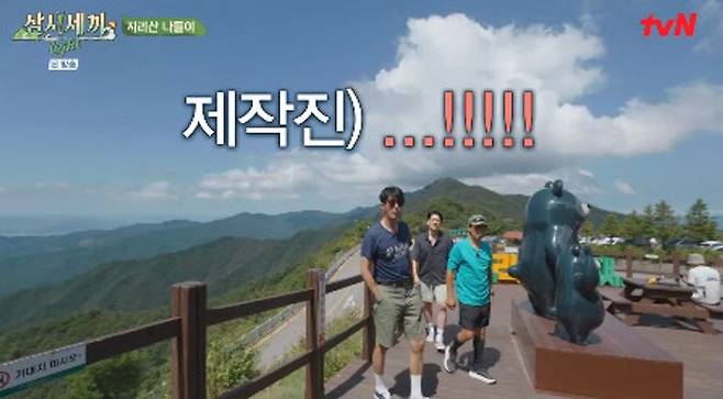 성삼재 휴게소에서 경치를 내려다보던 유해진은 “산이 좋아? 바다가 좋아?”라고 물었고 엄태구는 “군대있을 때는 첩첩 산중이 감독처럼 느껴졌는데 꽤 오래 시간이 지나니까 산이 좋구나 다시 느꼈다”라고 털어놨다. 차승원 역시 “나 별로 산을 안 좋아하는데 이건 진짜...”라며 절경에 감탄했다.