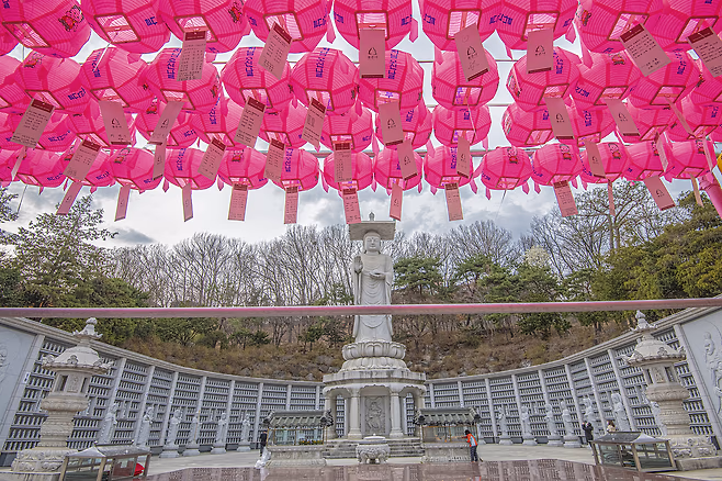 봉은사의 상징 중 하나로는 높이 23m가 넘는 해수관음상이 있습니다. 불교 신자가 아니더라도 어느새 두 손을 모으게 될 만큼 웅장하고 신비로운 분위기를 자아내죠. 해수관음상 주변은 탁 트여 있어 사색을 즐기기에 좋으며, 햇살이 따사로운 시간대에 방문하면 더욱 은은한 빛에 둘러싸인 관음상을 볼 수 있습니다.