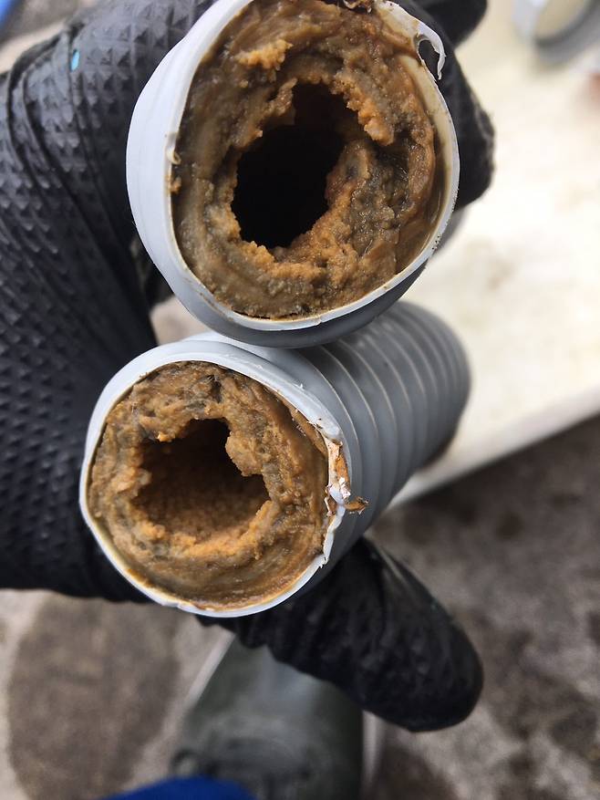 기름이 굳으면 배관 내부의 직경이 좁아지고, 결국 배수 불량이 생기며 결국은 배관 교체까지 필요하게 된다.