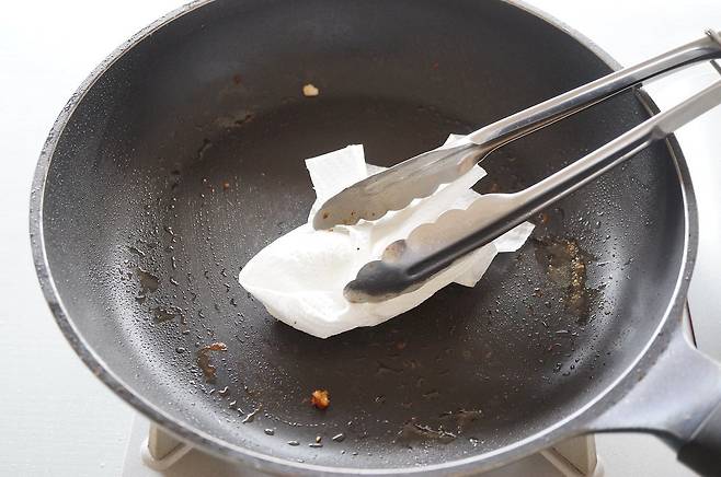 남은 기름은 키친타월이나 종이컵에 흡수시킨 후 일반 쓰레기로 버리거나, 기름 전용 수거 용기에 담아 처리하는 것이 최선이다.