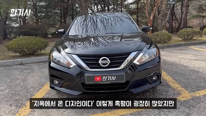 또 다른 장점으로 저는 이 차량 실외 디자인이 마음에 드는데요. 제가 이 차량을 구매했을 당시만 하더라도 인터넷에 이 알티마 5.5세대가 지옥에서 온 디자인이라는 혹평이 굉장히 많았지만, 개인적으로 그때 봤을 때나 지금 봤을 때나 닛산 특유의 V 모션 그릴이라고 불리는 프론트부터 날렵하게 이어지는 캐릭터 라인이 굉장히 마음에 들고요. 당시에는 호평을 찾아볼 수 없을 정도로 굉장히 많이 까였지만, 요즘같이 이렇게 일직선으로 테일램프가 나오는 시대에서는 굉장히 특이하고 예쁜 모양이라고 저는 생각합니다.