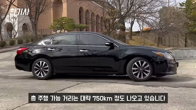 닛산 알티마의 장점은 첫 번째로 안정적인 주행감이 있습니다. 닛산 차종 가운데 처음 적용된 '액티브 언더스티어 컨트롤 시스템'이라고 있는데요. 그게 이제 코너링에서 앞쪽 앞바퀴에 제동을 걸어줘서 차체 앞머리를 굽이 길 안쪽으로 밀어준다는 시스템인데, 실제로 커브길에서 운행을 하다보면 굉장히 안정적으로 운행을 할 수 있고요.
