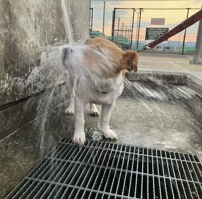 오히려 "이게 물놀이인가?"라는 듯 신나 보였는데요. 집사는 "강아지 포코가 처음에는 상황을 잘 이해하지 못했지만 곧 즐거워하는 표정을 지었다"라며 웃음을 감추지 못했습니다.