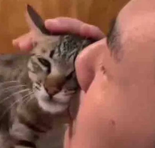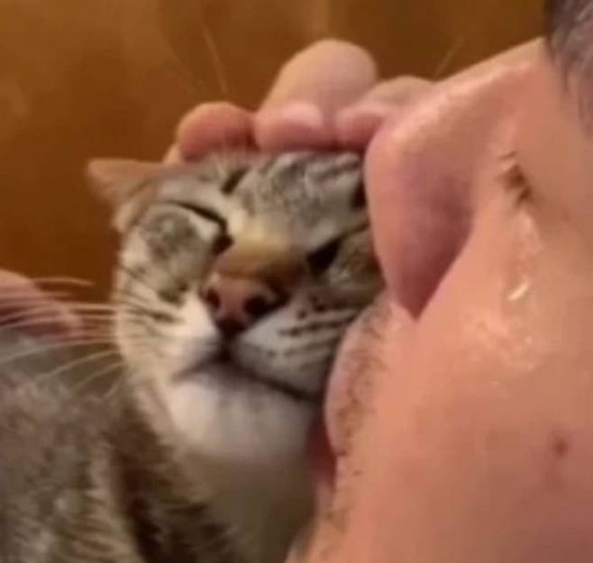 바로 집안에 있던 고양이를 안고 나와 택배 기사님 앞에 보여준 것입니다. 순간 택배 기사님의 눈에는 눈물이 고였습니다.