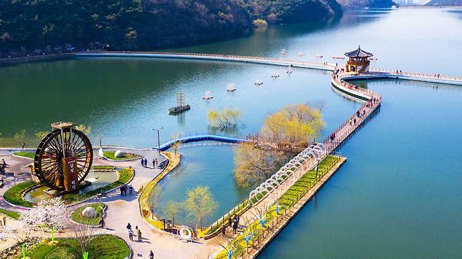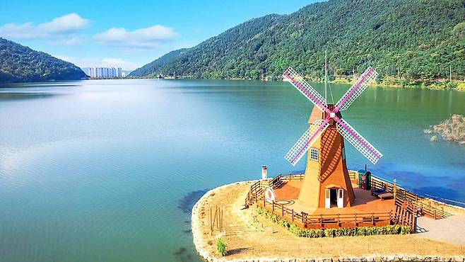 풍차 조형물과 어우러진 계절의 꽃들은 마치 작은 유럽 정원을 연상시킨다. 아이들과 함께라면 금동굴, 얼음빙벽 같은 테마 시설이 흥미를 더해주고, 전망대에 서면 옥연지의 전경이 한눈에 펼쳐진다.