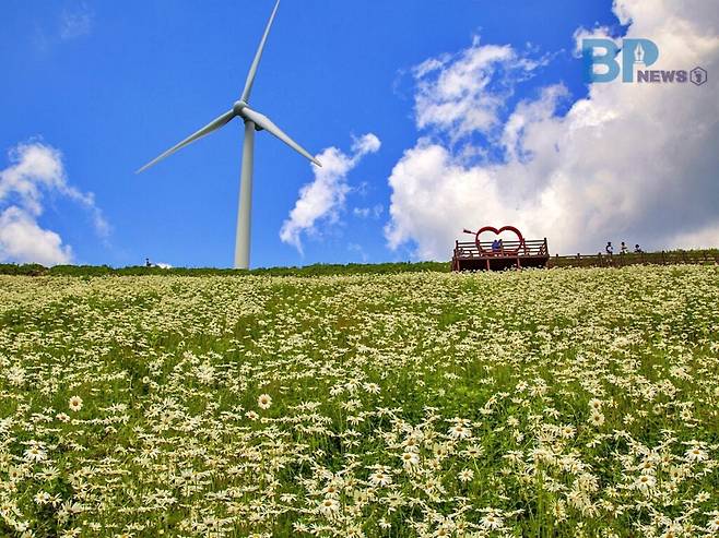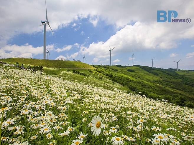 이곳의 가장 큰 매력은 탁 트인 하늘 아래 풍력발전기가 돌아가는 모습이다. 정상에 올라가면 시원한 바람과 함께 그림 같은 풍경을 감상할 수 있다.