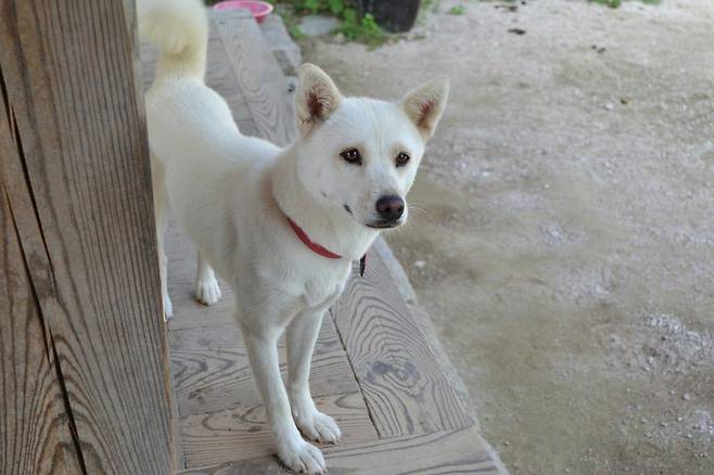 백구는 가장 많이 알려져 있는 진돗개 종류일 텐데요. 백구는 이름대로 털이 모두 하얀색인 진돗개입니다. 하얀색 혹은 아이보리색 정도의 털 색깔을 가지고 있어요. 귀나 오금쪽 털이 약간 노르스름한 빛을 띠기도 합니다.