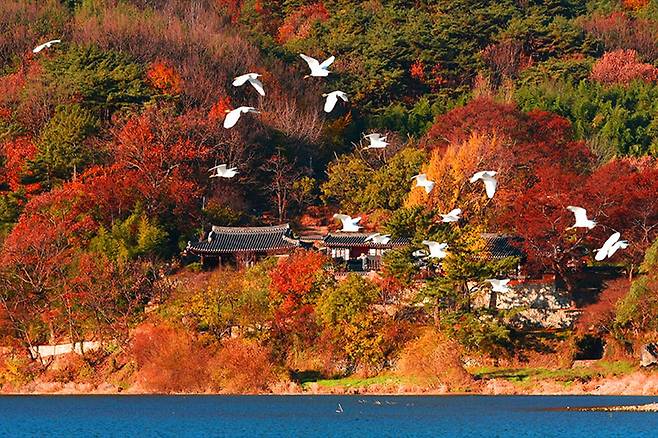 가을에는 주변의 단풍이 누각과 어우러져 한 폭의 그림 같은 풍경을 연출합니다.