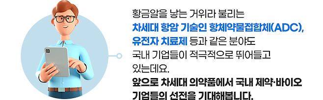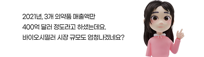 바이오 의약품은 부작용이 적고 효과가 뛰어나, 높은 가격임에도 난치성 질환 치료에 많이 쓰입니다. 바이오시밀러는 효능은 유지하면서 적은 비용과 짧은 시간 내에 개발할 수 있어서 많은 국내외 제약∙바이오 기업들이 개발에 뛰어들고 있는데요.