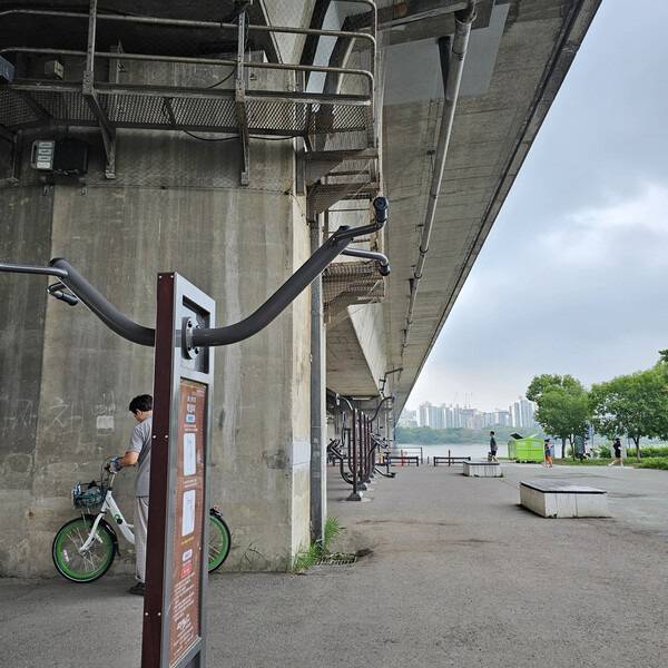 아파트 단지 옆이나 공원 한쪽에 늘 설치되어 있는 야외 헬스기구들.