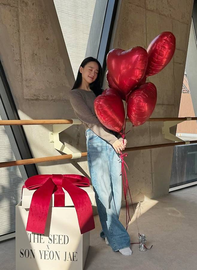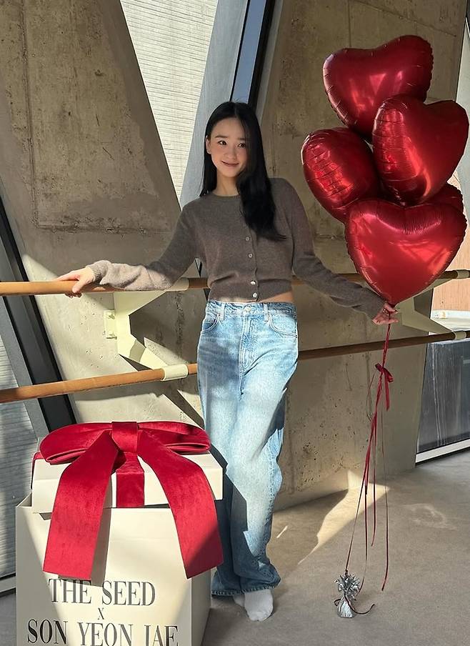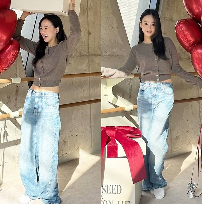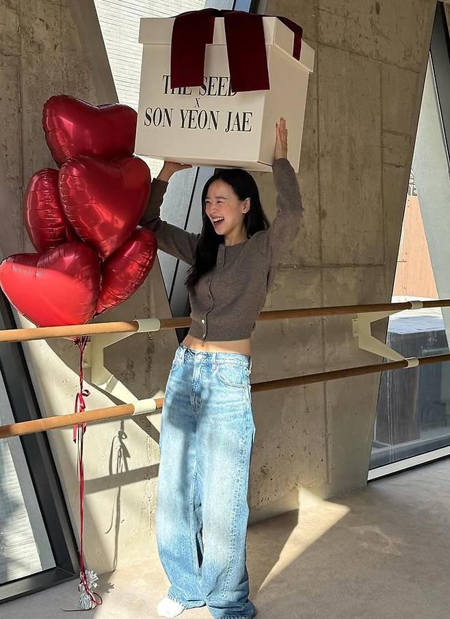 공개한 사진에서 손연재는 헐렁한 데님 팬츠와 허리 라인이 드러난 크롭 니트 카디건 데일리룩으로 늘씬한 슬림 핏을 과시했다.