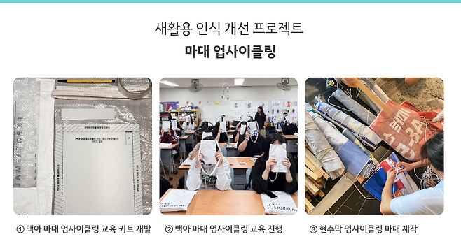 프로젝트 명은 <마대 업사이클링>으로 다음과 같은 활동을 했습니다.