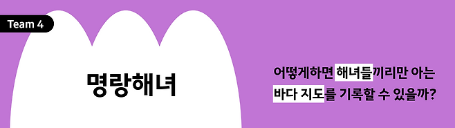 명랑해녀 팀은 사라질 위기에 놓인 해녀들의 지식, 문화와 전통을 지키기 위해 결성된 팀입니다. 해녀의 수가 감소하고, 고령화됨에 따라 해녀들끼리만 알고 있었던 바다의 이야기를 기록할 필요성을 느꼈습니다. 바다 위의 장소, 이름 등을 보존하고 지도로 제작하기 위해 신례리 해녀분들과 수중 다이버 팀, 지도제작팀, 촬영팀이 한 자리에 모였습니다.