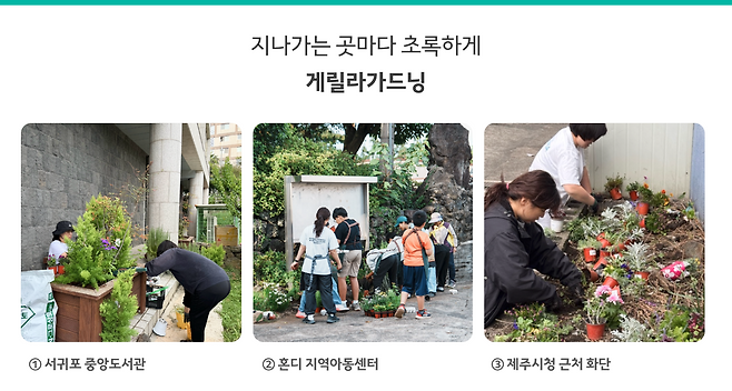 초록발자국 팀은 <게릴라가드닝 프로젝트>를 통해 제주도 곳곳에 ‘초록발자국’을 남겼습니다.