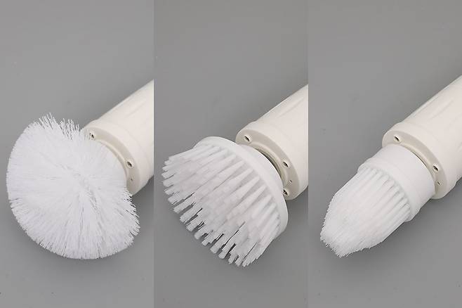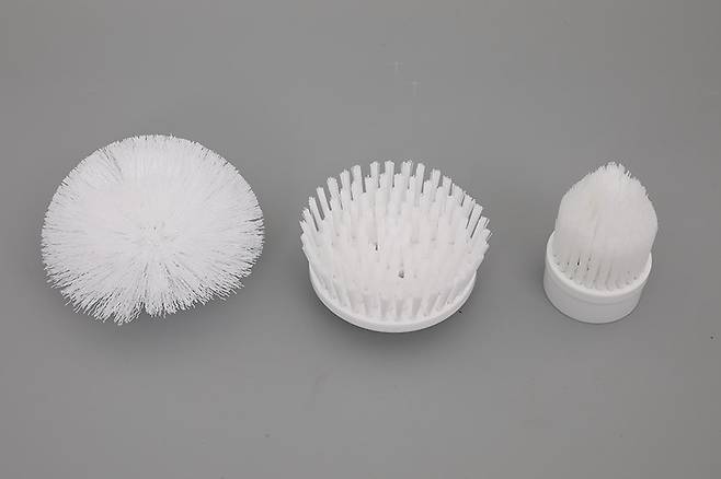 세 가지의 청소용 브러시 뒷면을 보면 본체 헤드의 결합부에 바로 결착할 수 있는 구조가 일체형으로 되어 있는 것을 확인할 수 있다.