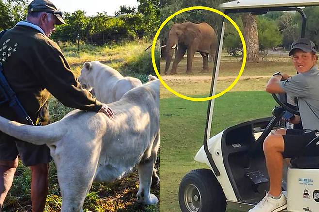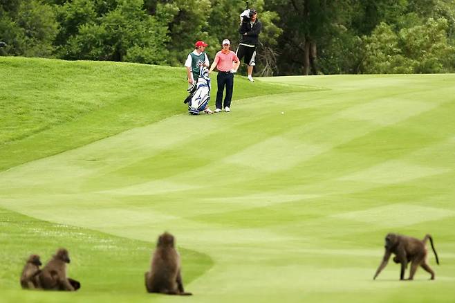 아프리카 골프장에 야생 동물이 등장한 영상이 화제를 모으고 있습니다.