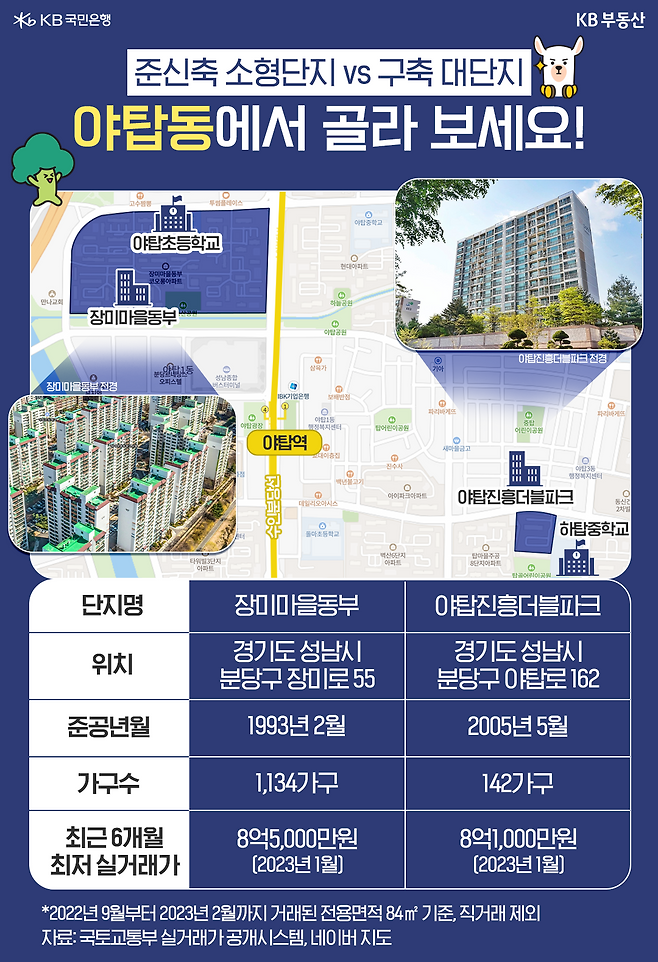 ‘천당 아래 OO’, ‘1기 신도시 맏형’, ‘재벌집 막내아들 진도준이 선택한 곳’. 모두 분당을 가르키는 수식어입니다. 분당은 뛰어난 교통과 더불어 잘 정돈된 도시환경 덕분에 수십 년째 인기 주거지로 평가받고 있습니다. 특히 최근에는 1기 신도시 특별법에 관한 내용이 더해지면서 관심이 증가하고 있죠. 이에 KB부동산이 최근 6개월간 분당에서 거래된 국민평형(전용면적 84㎡, 이하 국평) 아파트 중 저렴한 단지를 조사해봤습니다.