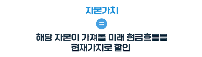 통상 자본의 가치는 해당 자본이 가져올 미래 현금흐름을 현재가치로 할인해서 계산합니다.