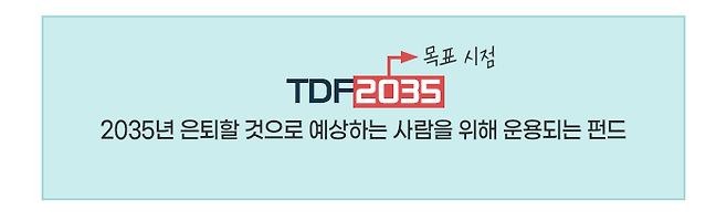 TDF 이름 제일 뒤에 4자리 숫자가 적혀 있을 겁니다. 이 숫자가 바로 목표 시점을 나타냅니다. 펀드 명칭 뒤에 2035라는 숫자가 쓰여 있으면, 2035년에 은퇴할 것으로 예상하는 사람들을 위해 운용하는 TDF라는 뜻입니다.