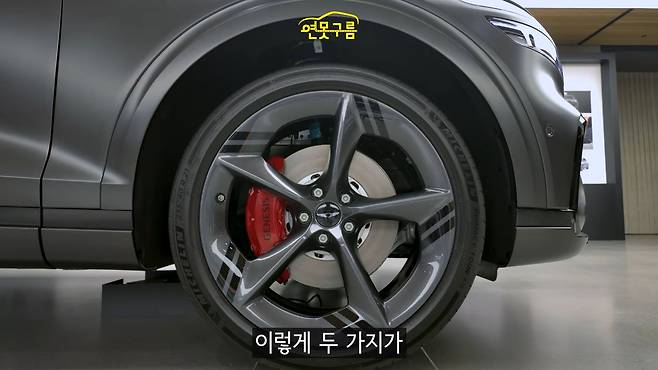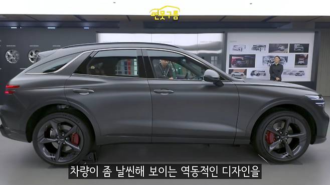 측면부에서는 스포츠 트림에 적용된 레드 캘리퍼와 255/40R/21인치 타이어와 다크 휠이 시선을 사로잡는다. 휠 디자인은 스포츠와 노멀 트림 간 가장 큰 차이다.