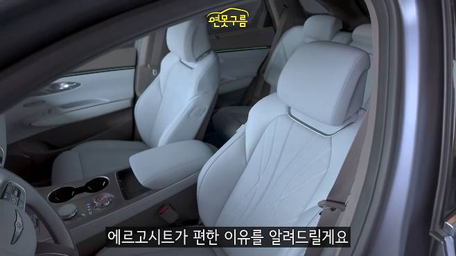 제네시스는 프리미엄 편의사양으로 에르고 모션 시트를 탑재했는데, 에어셀과 쿠션감이 일반 에르고 시트보다 뛰어나다고 설명했다. 2열 레그룸은 좁지만 엉덩이와 허벅지를 안정적으로 받쳐주고, 별도 공조기가 탑재되어 있어 공간 활용성이 높다.