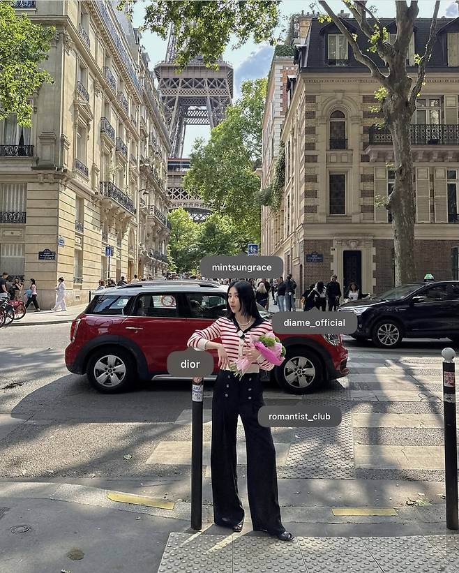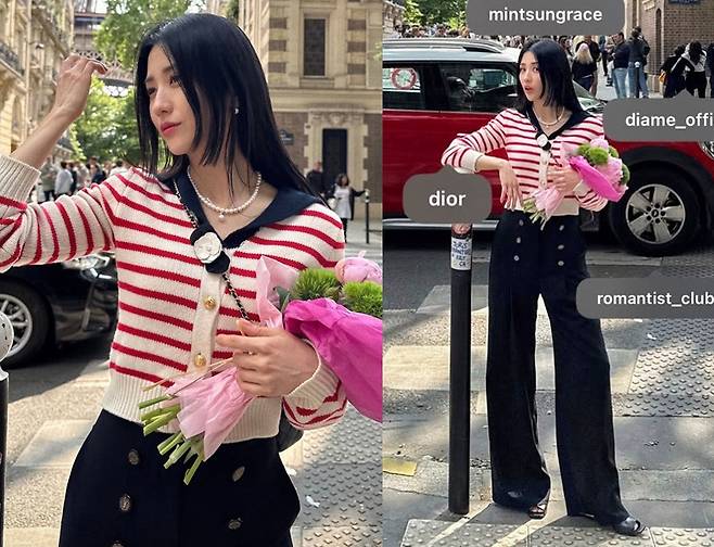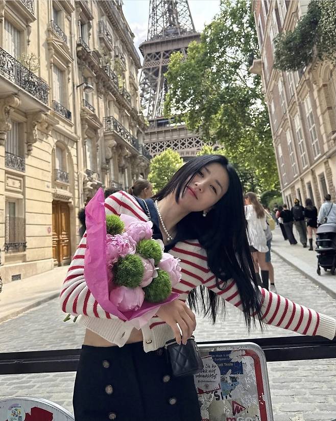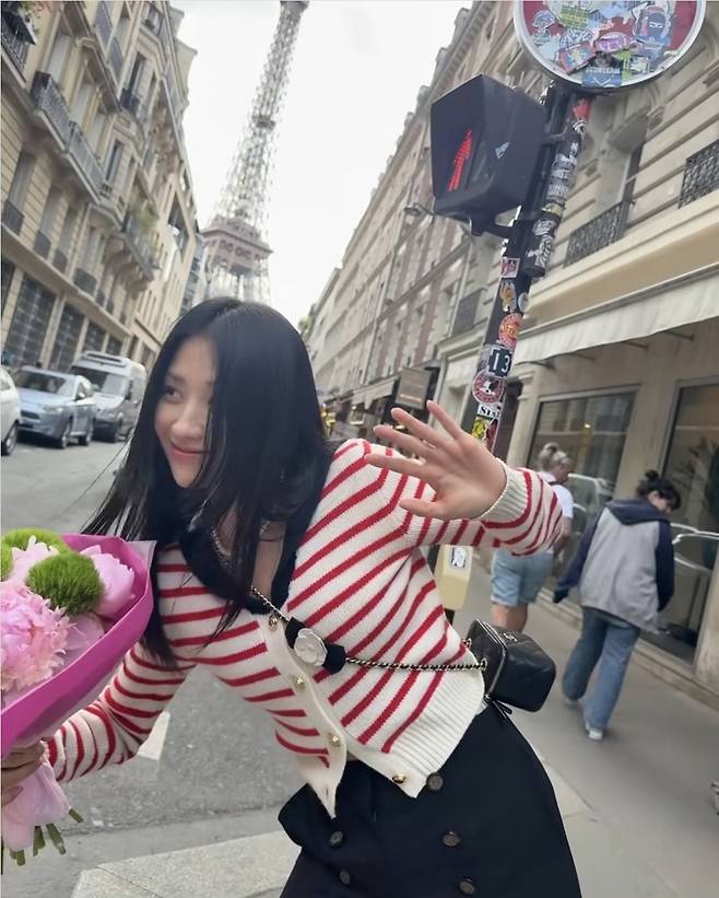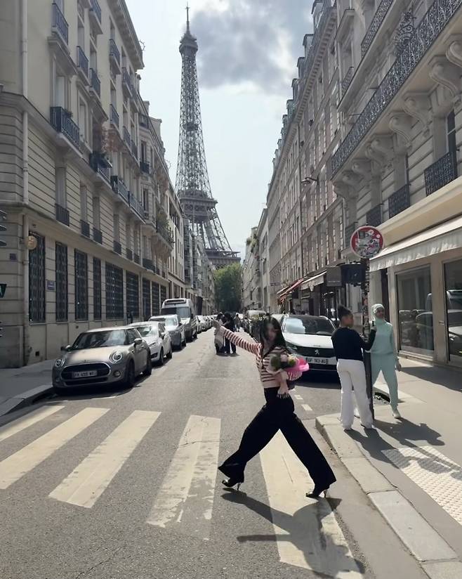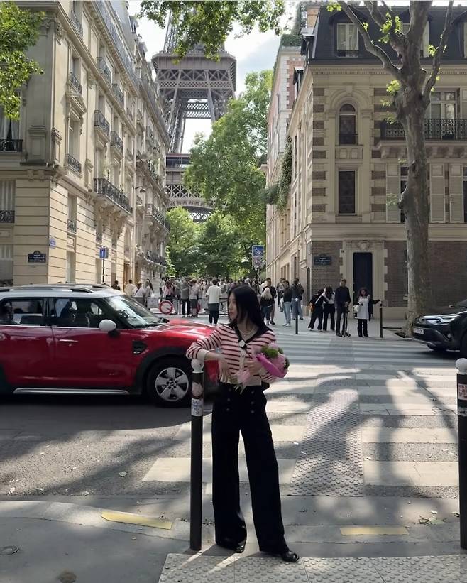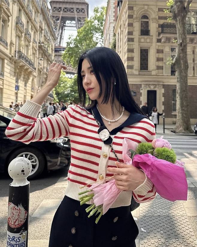 배우 박하선이 파리 거리에서 로맨틱한 프렌치룩을 완성했습니다.