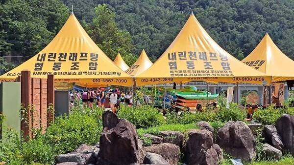 내린천은 국내에서도 손꼽히는 래프팅 명소로, 여름철이면 래프팅과 카약, 리버 버깅 등 다양한 수상 레포츠를 즐기려는 이들로 북적입니다.