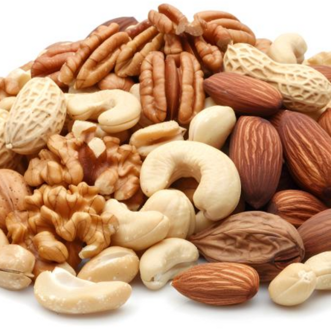 아몬드나 호두 같은 견과류에는 좋은 지방과 단백질이 들어 있습니다.