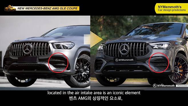 오각형 프레임을 둘러싼 유기적 형태의 공기 흡입구, 돌출된 범퍼, 전면 립 등은 AMG 모델의 역동성을 더욱 강조할 것으로 보인다.