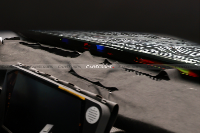 포착된 실내 사진에서 가장 눈에 띄는 부분은 기존 계기판의 자리를 대신한 '파노라믹 i드라이브(Panoramic iDrive)'입니다. 이 디스플레이는 앞유리 하단을 따라 좌우로 길게 이어지며, BMW 전통의 클러스터 디자인을 완전히 탈피했습니다.