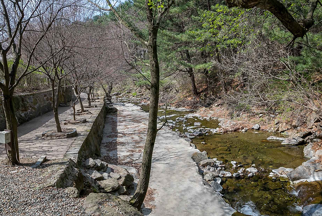 πͺ΅ λ무μ κ³κ³‘, κ·Έλ¦¬κ³ μμ° κ·Έλλ‘μ μΌνΈλ₯΄λ₯Έ μλ무 μ¬μ΄, μμν κ³κ³‘λ¬Όμ΄ μ¬μμ¬μ² νλ₯΄κ³ μμν λ¬Όμ리μ νμ΄μ΄ μ΄μ°λ¬μ§λ μ΄κ³³.
