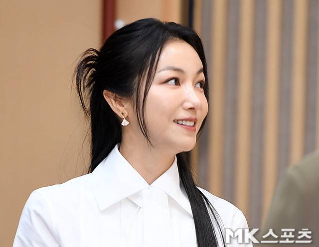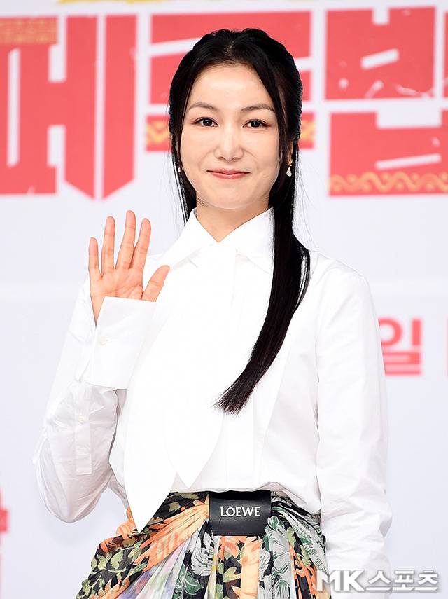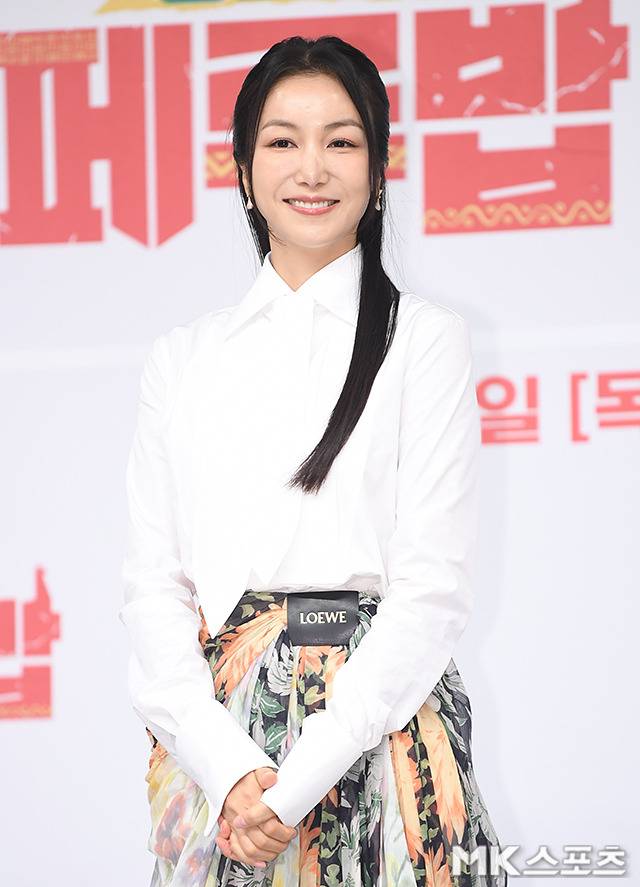 전체적으로 우아한 화이트 셔츠와 대비되는 플로럴 패턴의 강렬한 조화가 돋보이는 룩으로, 김옥빈 특유의 기품 있는 아우라가 더욱 빛났습니다.