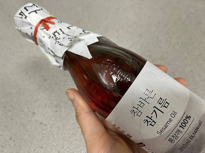 참기름은 빛에 노출되면 산패가 일어나 품질이 저하됩니다. 그렇기 때문에 새로 구매한 참기름병은 반드시 불투명하게 가려 주세요.