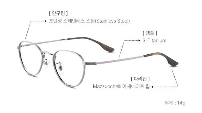 베타 티타늄 (탄성이 매우 좋고 착용시 아주 가벼운 소재)으로 제작되었습니다.