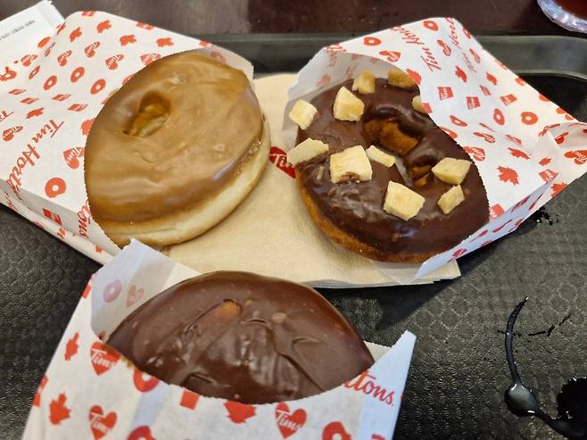 정리하면, 외장과 내부 인테리어는 캐나다를 알 수 있게 다양한 디스플레이가 눈길을 끈다. 홀이 넓어서 그런지 너무 시끄러운 분위기. 동네가 강남이라서인지 모르겠지만 아줌마들이 절반 이상이다. 가격은 좀 더 저렴했으면 좋았을 것 같다. 커피맛은 쏘쏘였고 도넛 종류가 생각보다는 많지 않았다. 눈이 번쩍 띄일만한 경험은 없었고 "캐나다 사람들은 이런 걸 먹는구나"하고 경험상 한 번 다녀올만한 곳이었다.