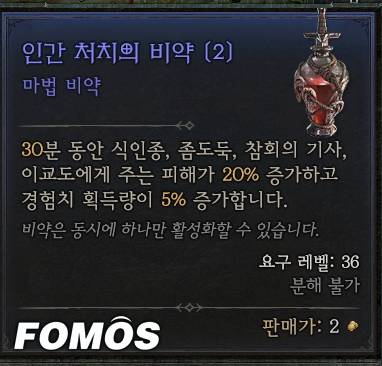 약 30분이라는 시간 동안 유지되는 비약 아이템을 사용하면 버프와 함께 5%의 추가 경험치를 얻을 수 있다. 버프는 전투에 직접 영향을 주는 혜택이 많기에 비약 버프는 되도록 유지하는 것이 좋다.